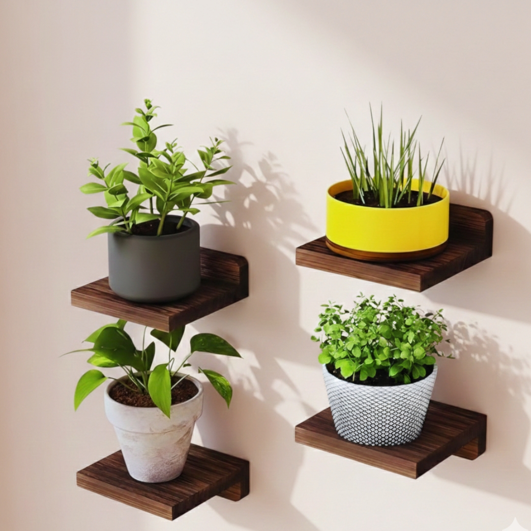 Enhance your interiors with this Square Floating Wall Shelves—Set of 4, designed to combine modern aesthetics with everyday functionality. Crafted from durable engineered wood and finished in an elegant black color, these wall-mounted floating shelves are perfect for displaying décor items, books, plants, photo frames, and small essentials.